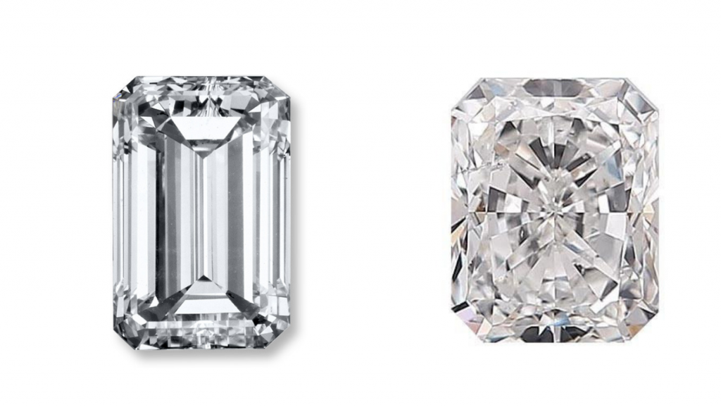 Let’s look at the key difference between the emerald and radiant cut diamonds.