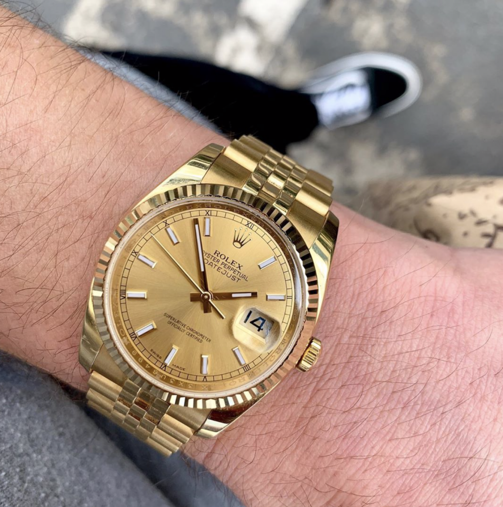You’ll find the Day-Date at the opposite of the Rolex spectrum. Lavish, powerful, eloquent, and a much higher price tag. They’re only manufactured in 18ct yellow, rose and white gold, as well as 950 platinum.